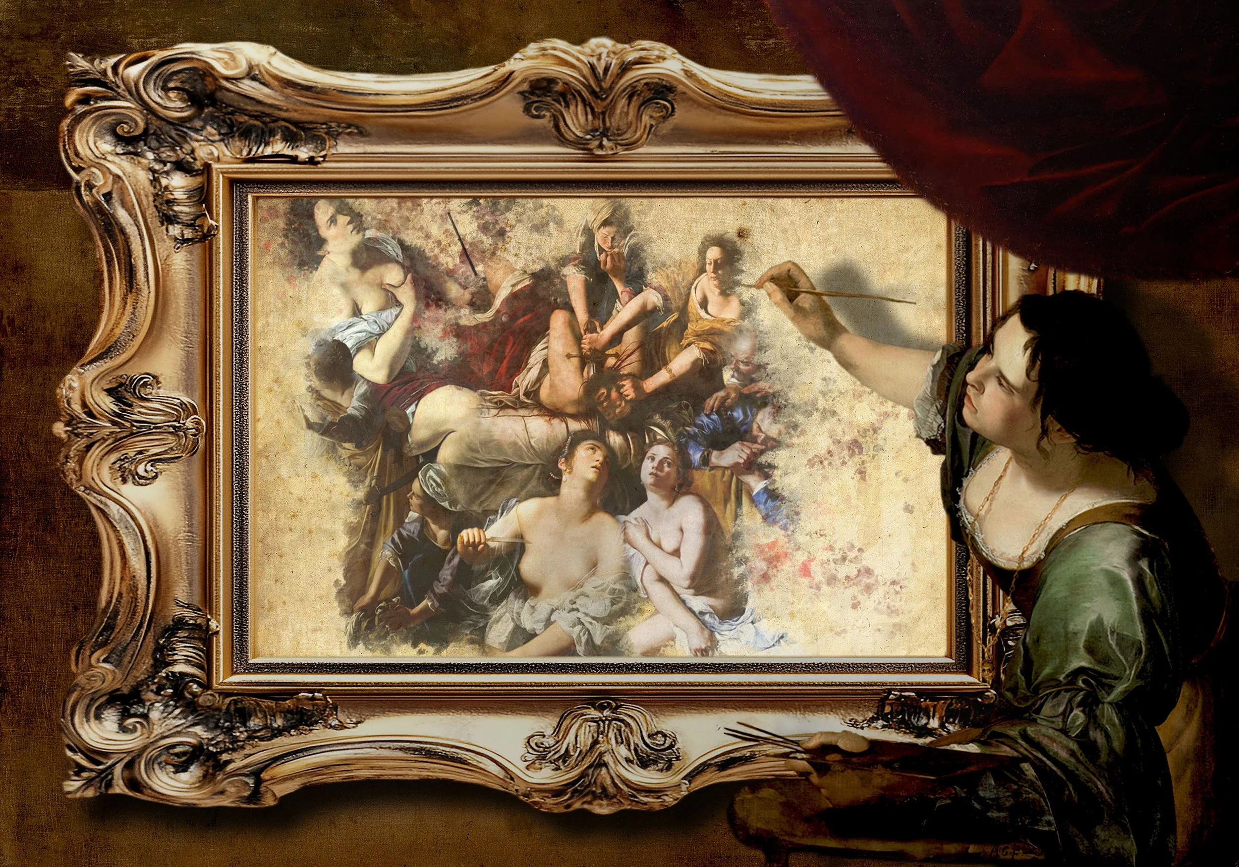 Constructed Portrait of Artemisia Gentileschi Mediums used: Digital Imaging/Compositing, Adobe Photoshop This piece is a constructed portrait of Artemisia Gentileschi using a collage of her artwork. I wanted to pay homage to a talented woman who did not get the recognition she deserved in her time.